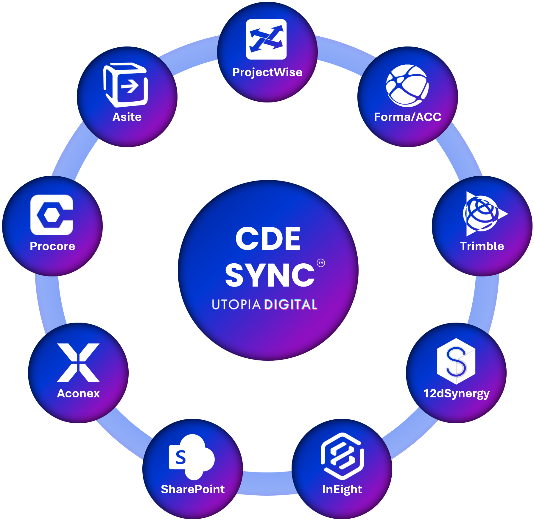 Our flagship product, CDE Sync™, is a Microsoft-backed, AI-driven cloud integration platform that connects fragmented supply chain data and automates synchronisation across leading Common Data Environment (CDE) platforms — including Autodesk Construction Cloud, Bentley ProjectWise, and Microsoft SharePoint. It ensures seamless, secure data flow across the project lifecycle, creating a unified single source of truth and eliminating costly manual processes.